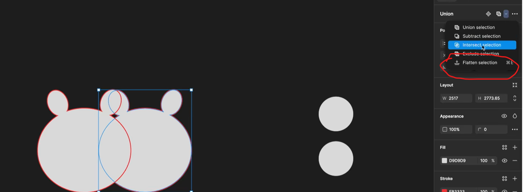 - 操作目的: 选中布尔运算后的编组,点击 Flatten Selection,可以将这些原始元素压平,删除下级(原始)的图层元素。
